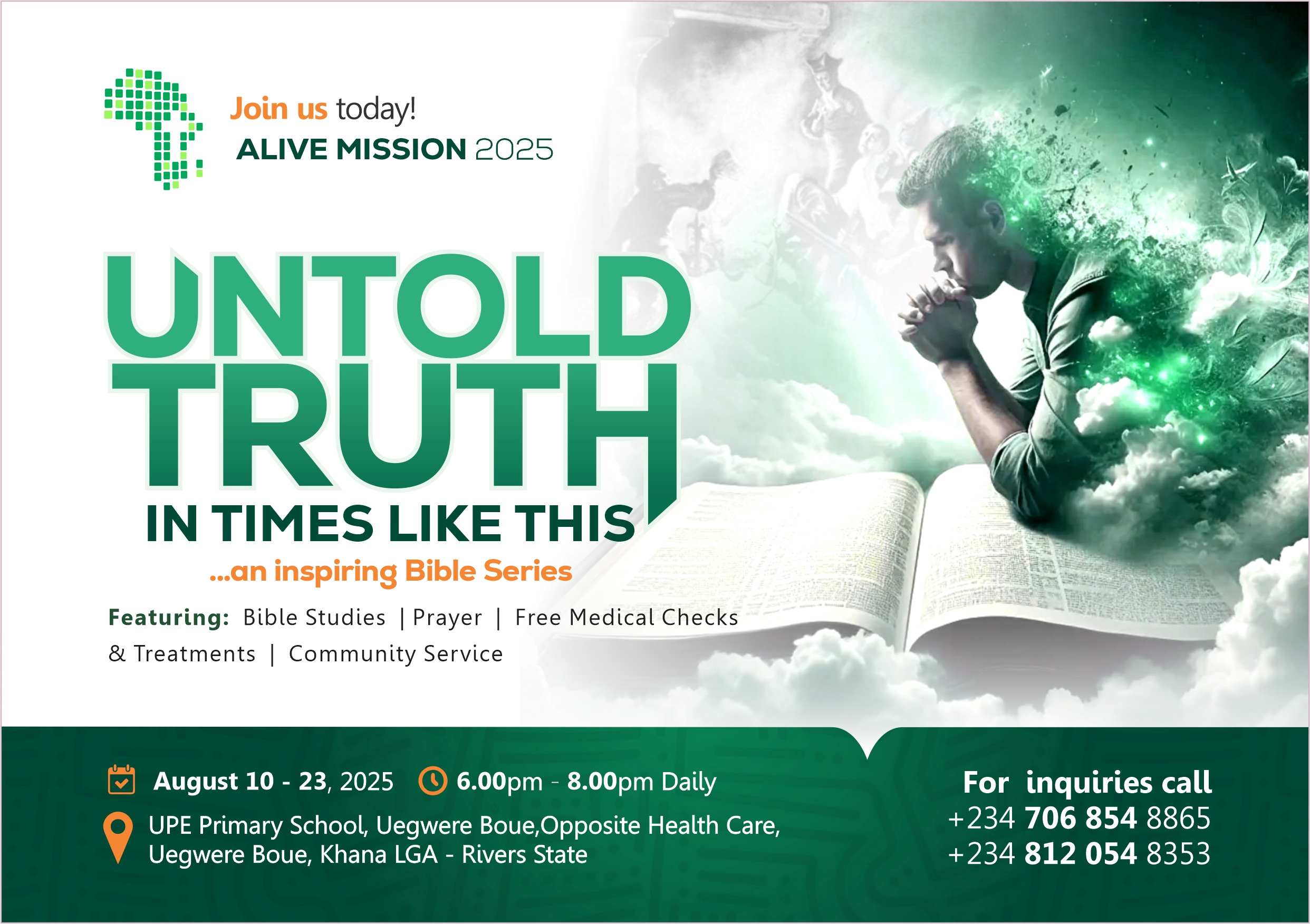 We are thrilled to announce that ALIVE-Nigeria missions is underway, bringing hope and healing to Uegwere Boue community in a powerful three-week outreach. it's a testament to the unwavering spirit of compassion and faith and hope int the second coming of our Lord Jesus Christ.